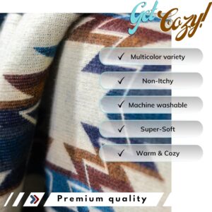 Alpaca Wool Throw Blanket,Queen Size Native Design Wool Blanket, Throw Aztec Pattern Alpaca Wool Throw Blanket (Blue, Queen 93″ x 82″)