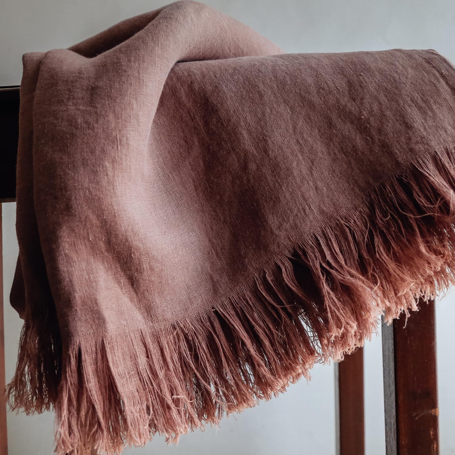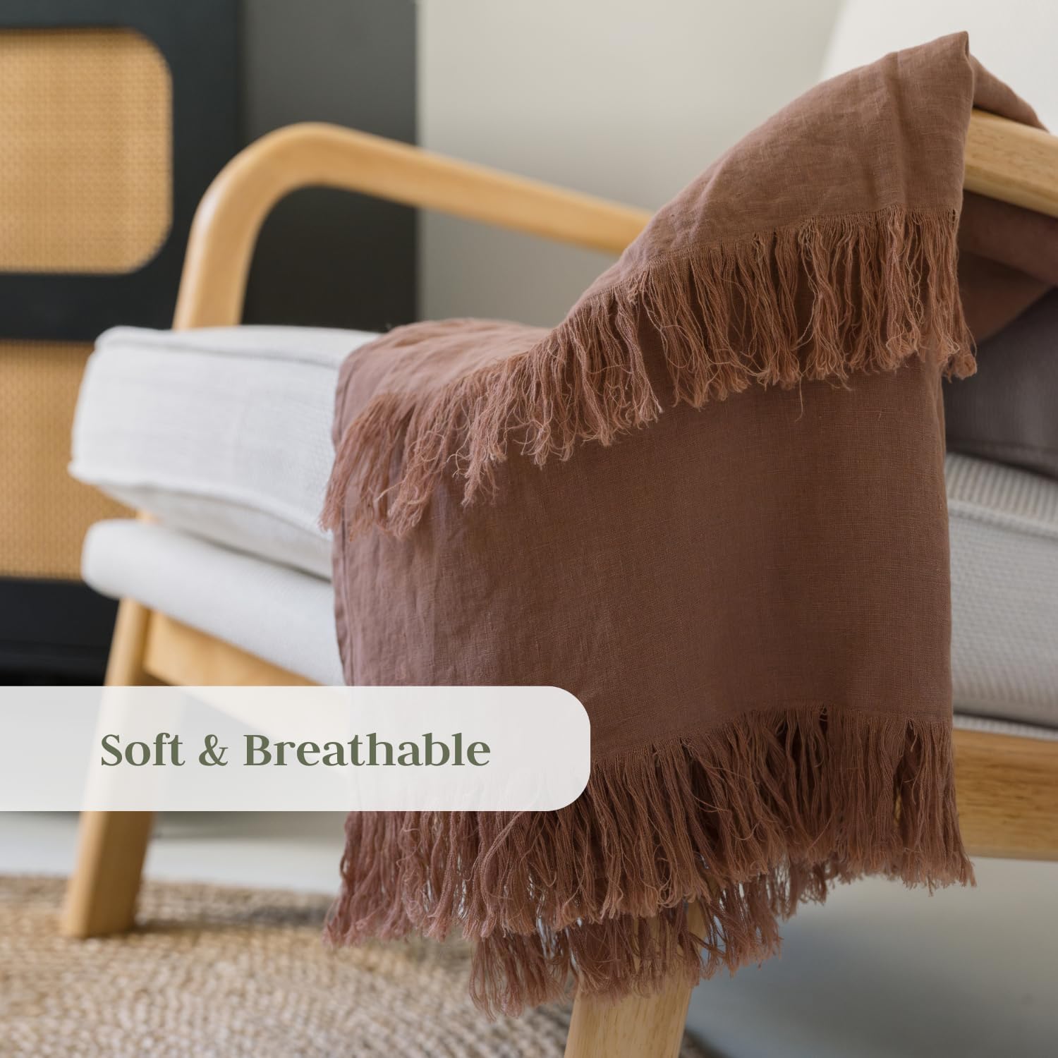 CG Hunter Throw Blanket 50×70 100% Linen Chocolate Brown i##e##s: Premium Home Decor ^^ Throw with Fringe ^^ for Living Room & Bedroom :i##e##s