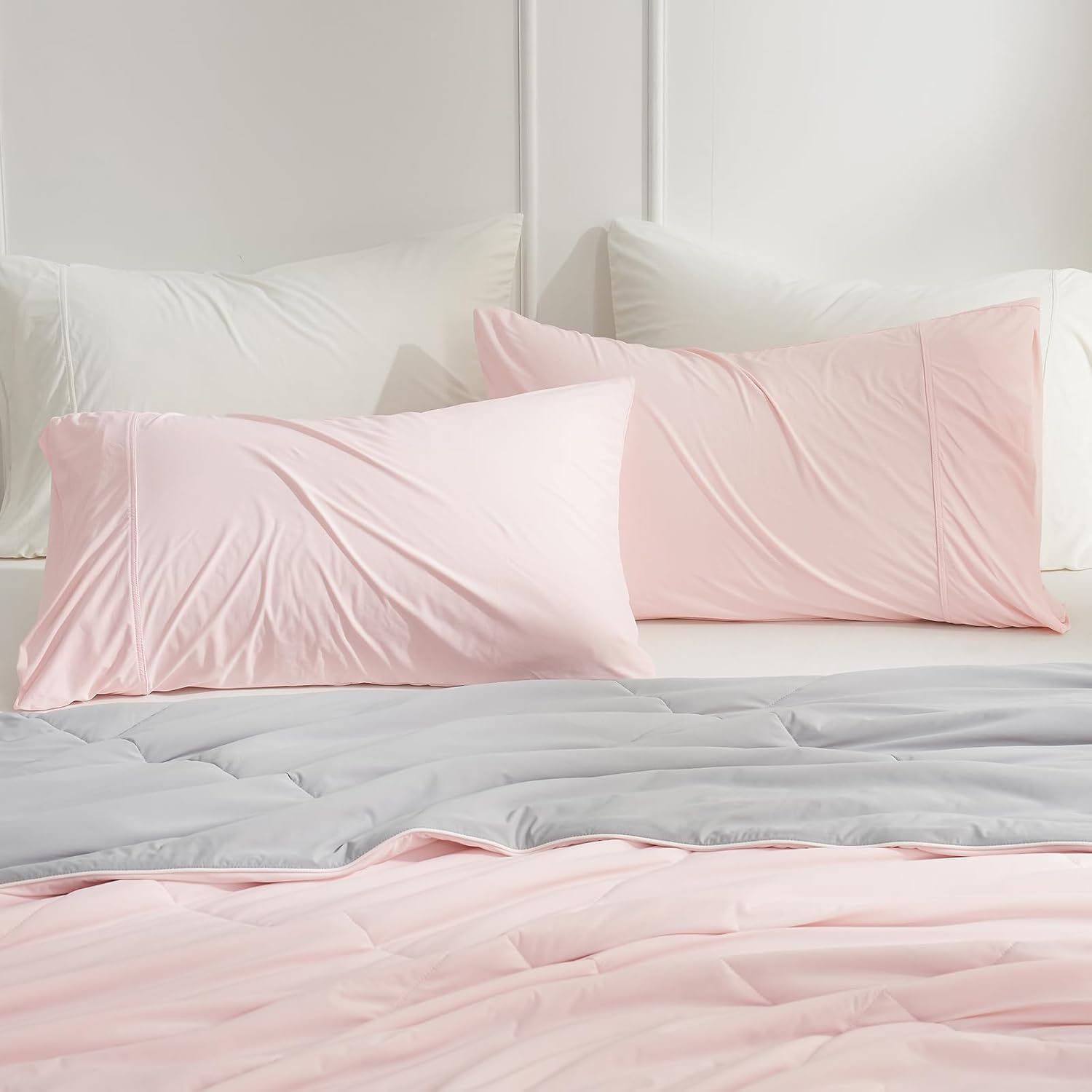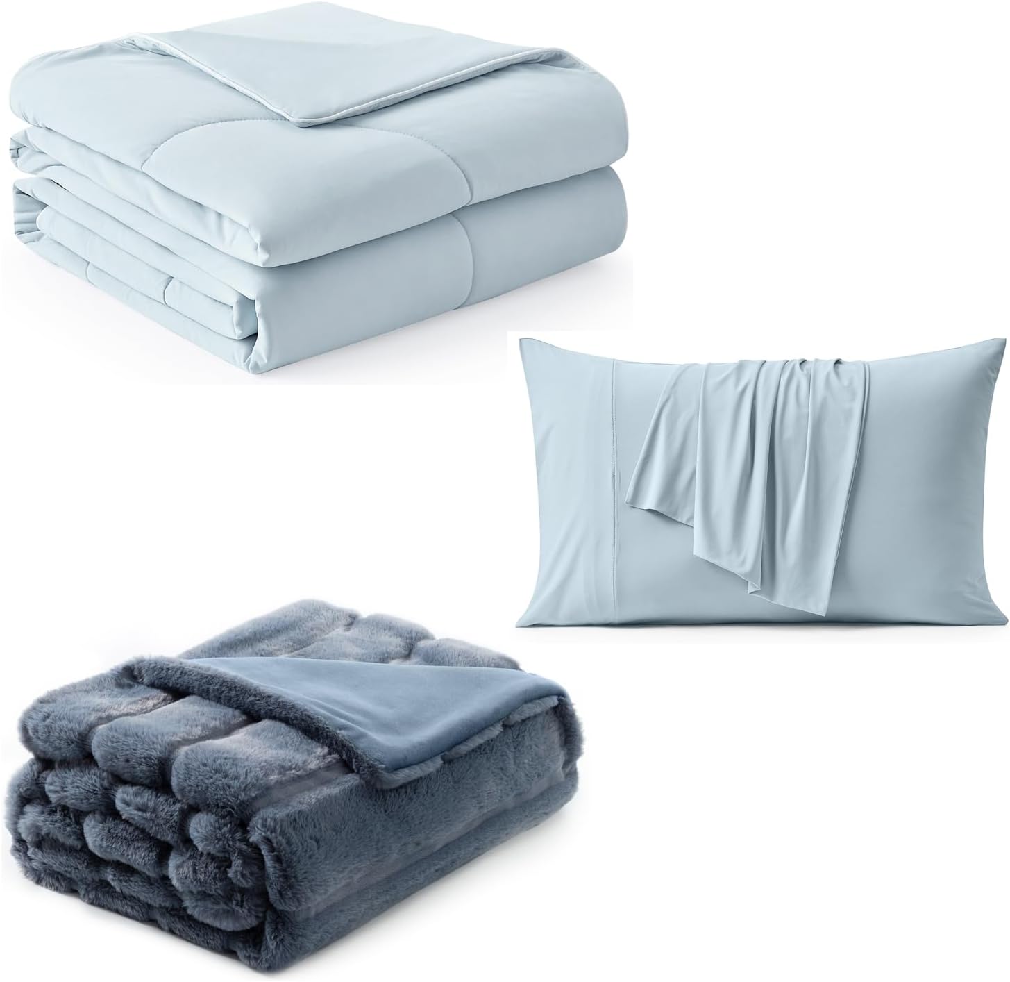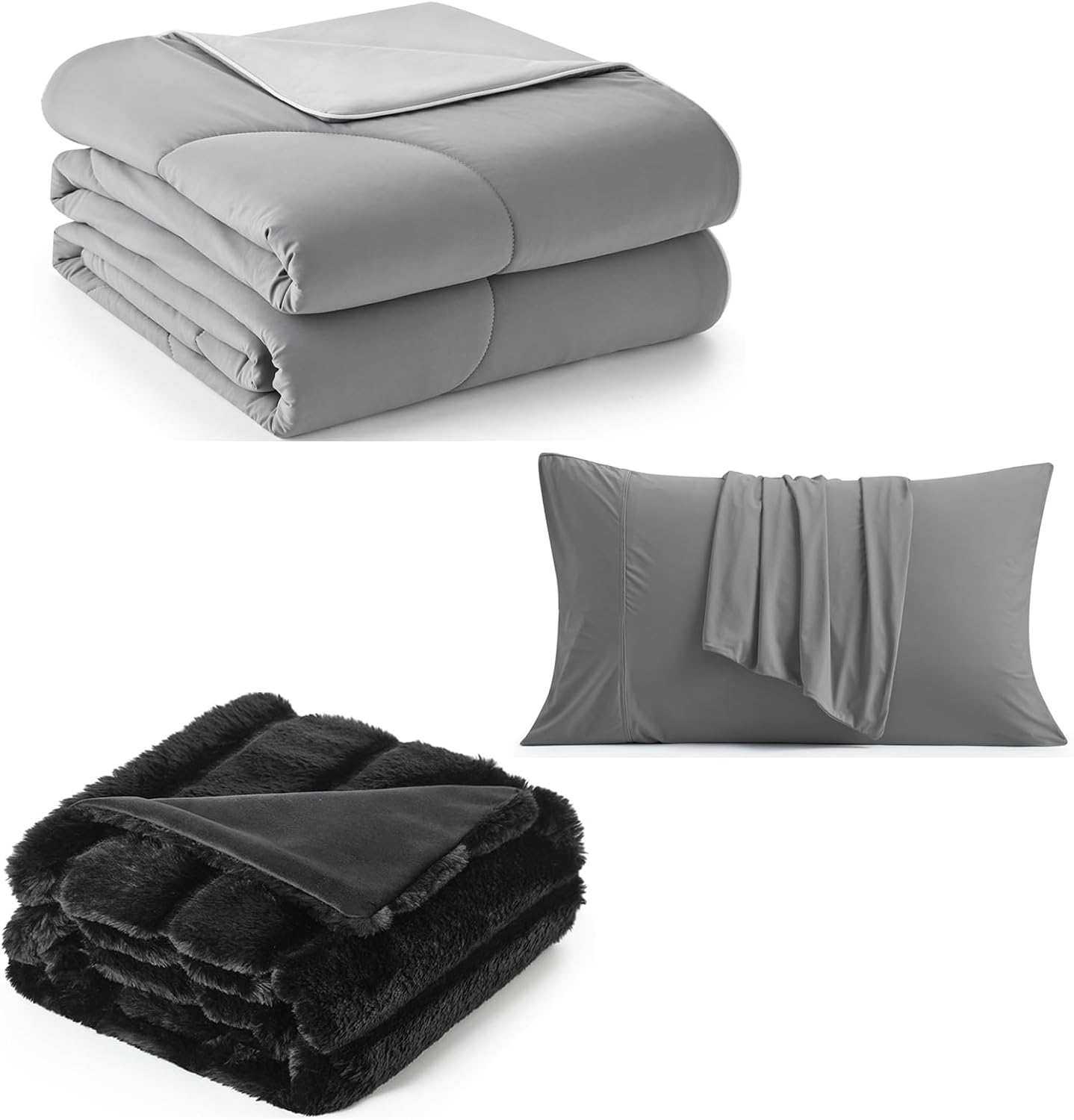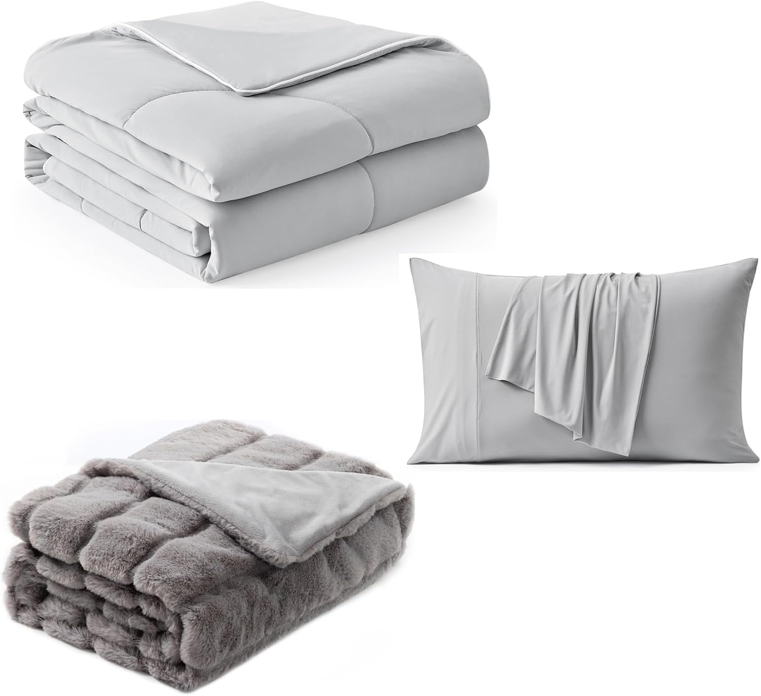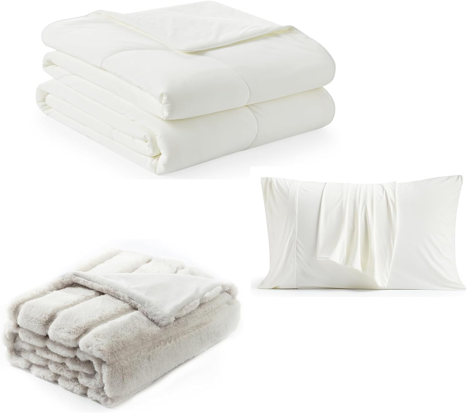 Cozy Bliss Faux Fur Throw Blanket 60 * 80 Inches and Cooling Comforter Queen Size 90 * 90 Inches and Cooling Pillowcase Queen Size 20 * 30 Inches