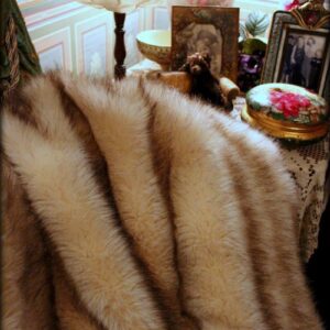 Fur Accents Throw Blanket/White Arctic Fox with Brown-Tips/Silky Soft Minky Fur Backing 5′ X 6′