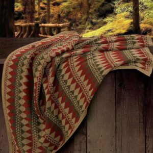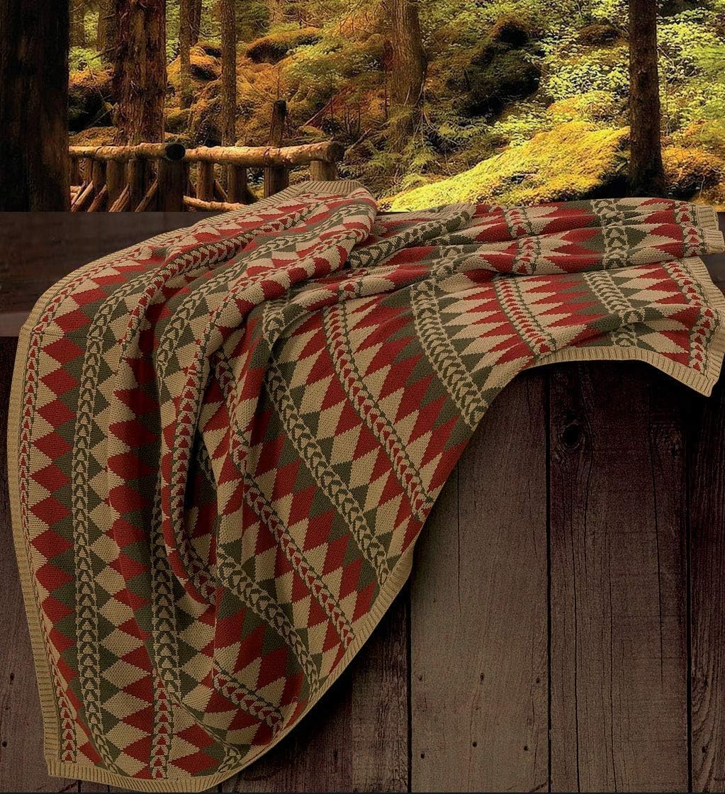 HiEnd Accents Wilderness Ridge Red Tan Olive Green Cotton Throw Blanket 50×60 inch Aztec