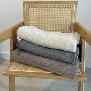 Luxurious 100% Cashmere Cable Knit Throw Blanket \u2013 Ultra-Soft, Warm, and Elegant \u2013 Available in Neutral Tones (Cream)